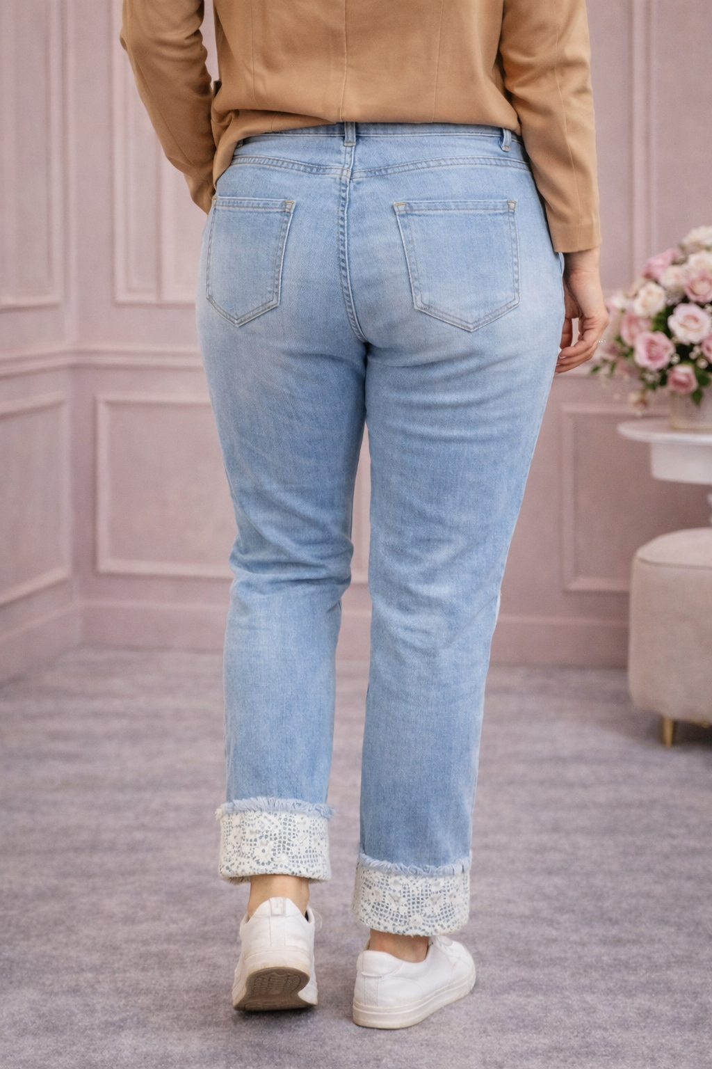 Der Schnitt sitzt bequem und schmeichelhaft, während die aufwendigen Details für einen femininen, exklusiven Look sorgen. Ob lässig mit Sneakern oder chic mit Blazer – diese Jeans wertet jedes Outfit sofort auf ✨