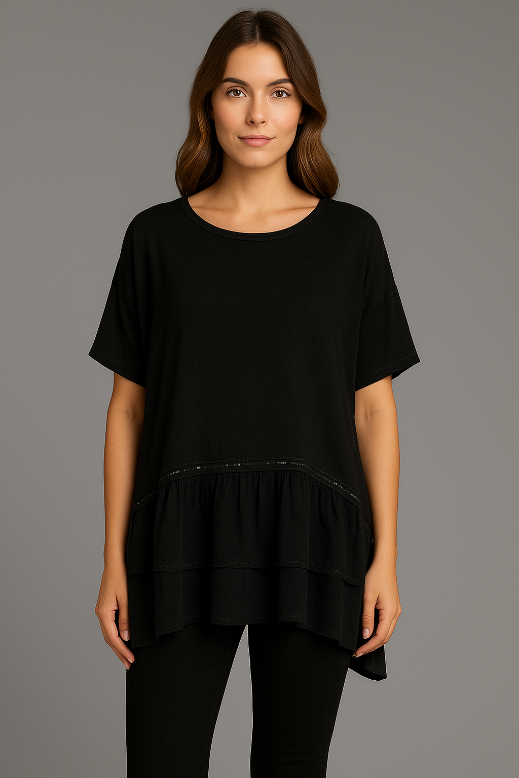 Die 75–80 cm Länge macht es zum Allrounder: vorne in die Hose, über Leggings oder einfach locker fallend – immer ein Hingucker!